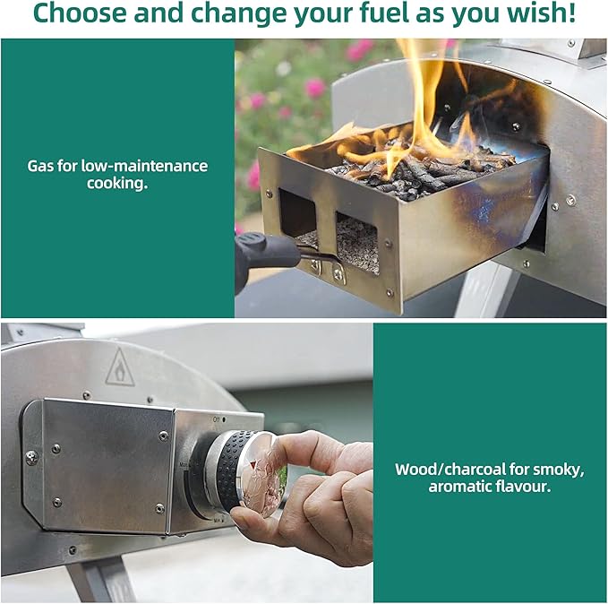 • Versatile Cooking Experience: The YITAHOME Multi-Fuel Outdoor Pizza Oven offers dual-fuel capabilities, allowing you to cook with both wood and gas, providing flexibility and convenience for creating delicious pizzas in your backyard or campsite.