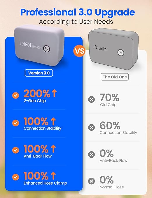 • 🥇 [New Upgrades for Superior Performance]: The LetPot automatic watering system now includes an anti-backflow valve to prevent the siphon effect, enhancing watering efficiency. Its upgraded 2.0 chip ensures faster and more stable connectivity, while the LetPot app supports up to 5 simultaneous watering tasks for maximum flexibility. Combined with an advanced spiral lock, it maintains better water pressure retention, ensuring consistent and reliable irrigation every time.