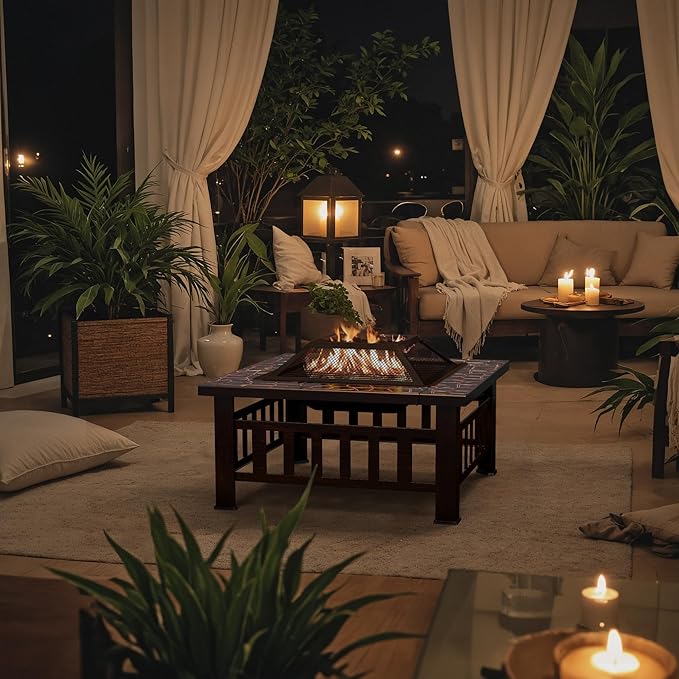 • [ Reliable Security ]: Firepit table features square design with sturdy legs for stability, while the mesh spark screen and poker provided effectively prevent sparks from flying and safely move the grill.
