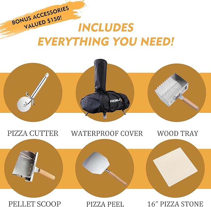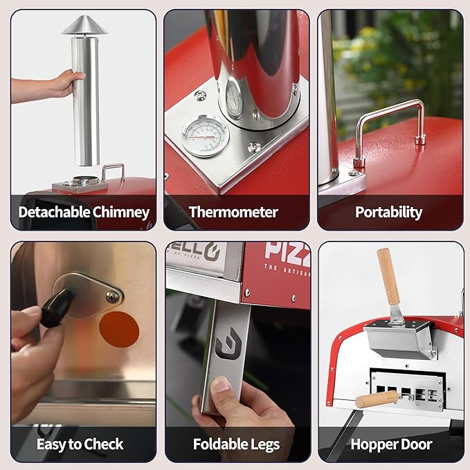 • Perfect Gifts for Family - Wood pizza Oven included removable parts: stainless steel Pizza Peel x 1, Pizza cutter x 1, cordierite 16" Pizza Stone x 1 , detachable Wood Tray x 1, waterproof Cover x 1 , Pellet Scoop x 1, You don’t need to pay extra money for these key Accessories. Brings the joy of thanksgiving home - Every household thrives on delicious pizzas! Perfect Christmas gifts for family, gather closer in the new year.