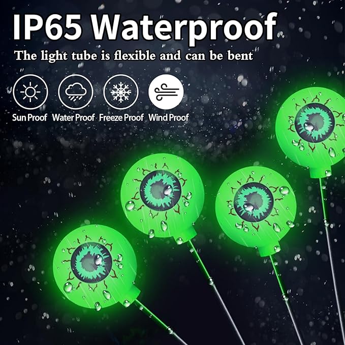 • [Vivid & Scary Design]:With a 3D design and swaying eyeballs that appear more three-dimensional and realistic,these lights feature the perfect combination of bloodshot eyes and eerie green light, making your yard the most mysterious and terrifying presence on Halloween night