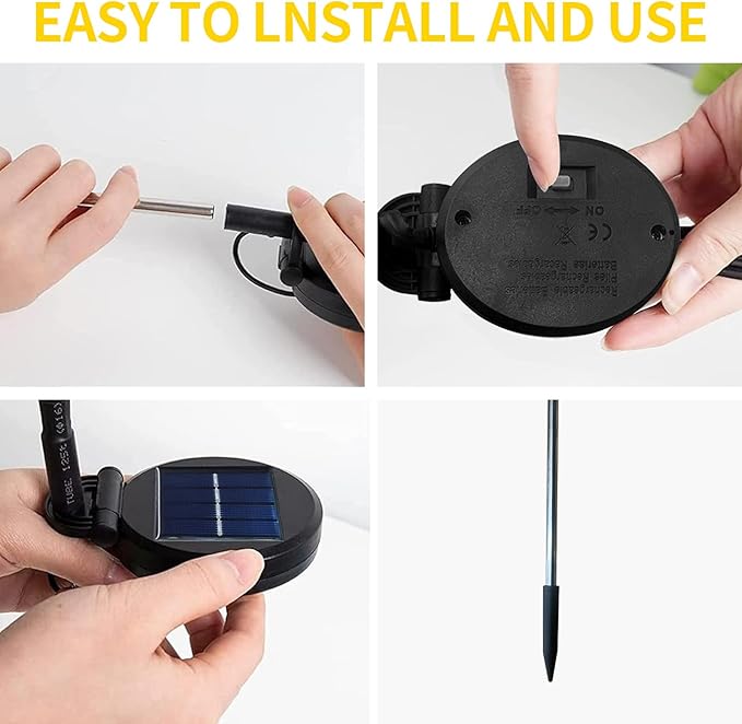 • EASY TO USE:No cables or plugs needed, simply plug in solar lights in your garden,turn on the switch,and enjoy the most beautiful solar decorative lights. These solar lights are perfect for garden,door,pathway,backyard decoration,and much more