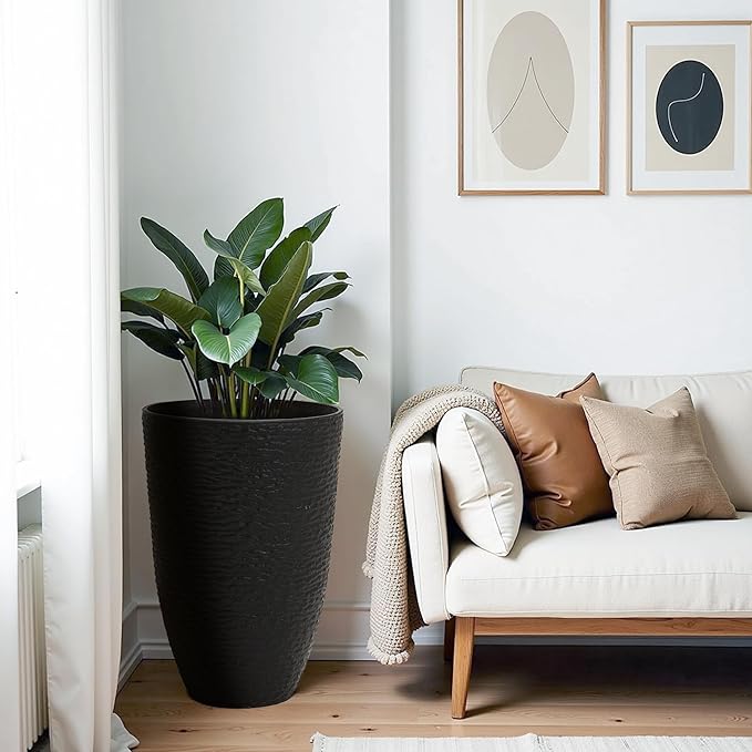 • Spacious Design: Each planter measures 21 inches in height and 14 inches in diameter, providing ample space for plants and trees; Made from high-quality plastic, 85% recyclable PP +15% stone powder, these planters are built to withstand outdoor conditions