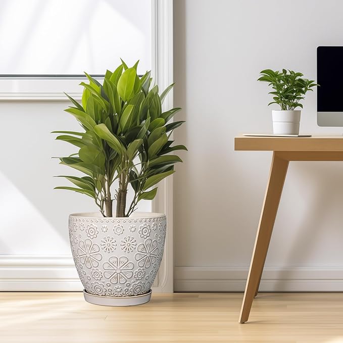 • Stylish Appearance: Our ceramic planter has a white main colour and a beautiful embossed petal pattern on the surface, elegant appearance making it ideal for home decor, garden decor and office decor