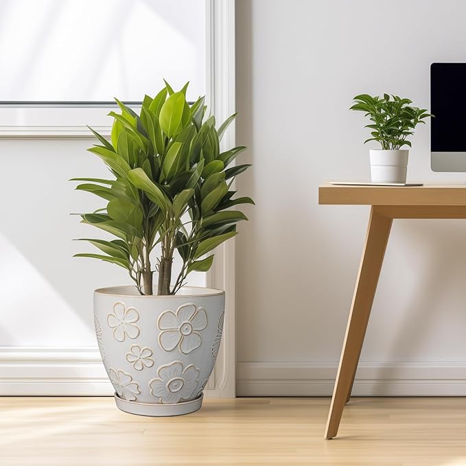 • Stylish Appearance: Our ceramic planter has a white main colour and a beautiful embossed petal pattern on the surface, elegant appearance making it ideal for home decor, garden decor and office decor