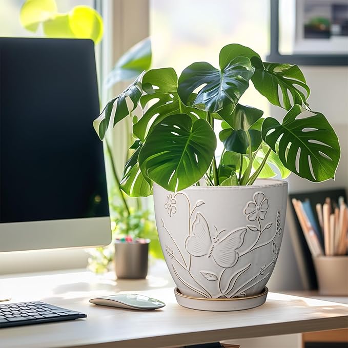 • Suitable for A Variety of Plants: This ceramic plant pot with trays suitable for small to medium-sized plants such as orchid, succulents, bonsai, cacti, aloes, money tree, olive tree, monstera and so on