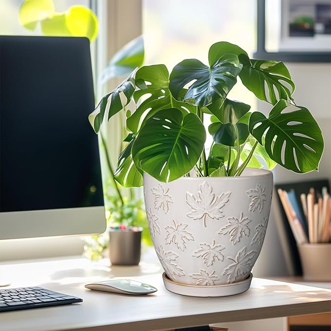 • Stylish Appearance: Our ceramic planter has a white main colour, a beautiful embossed maple leaves pattern on the surface, elegant appearance making it ideal for home decor, garden decor and office decor