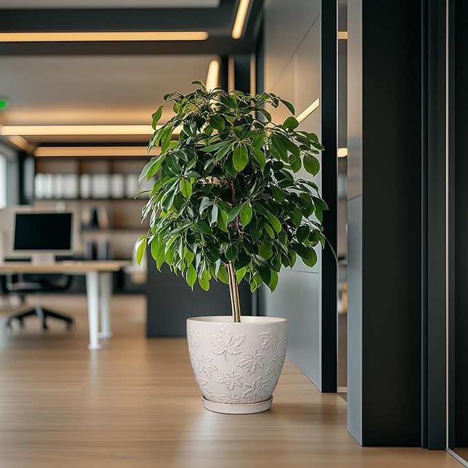 • Stylish Appearance: Our ceramic planter pot has a white main colour, a beautiful embossed maple leaves pattern on the surface, elegant appearance making it ideal for home decor, garden decor and office decor