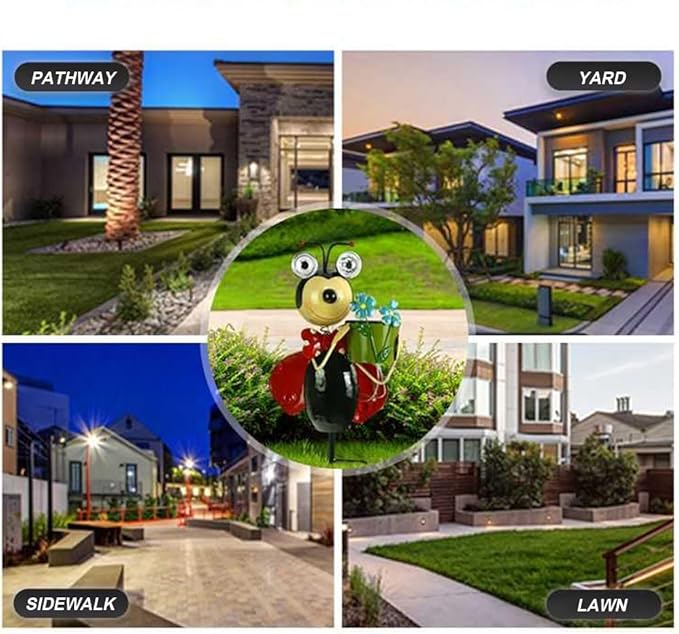 • 【SOLAR POWER EYES】Turning on the switch under the light’s flower pot, The garden solar lights will charge over daylight and activate automatically at night. This solar bug light eyes will automatically light up about for 6-8 hours after fully charged in the daytime.