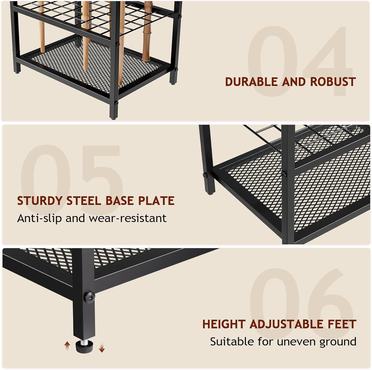 • 【Keep it tight, no more falling】: Paralleled up-down slots help keep sticks straight, ensuring most of your garden equipment remains in one spot without falling over. The bottom flow-through grate prevents standing water.