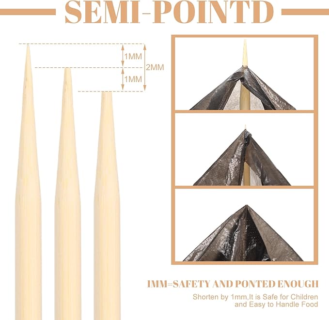 • 【Skewers for Smores】You will get 300pcs long bamboo marshmallow roasting sticks,enough for multiple hiking/camping trips or multiple barbecue parties.