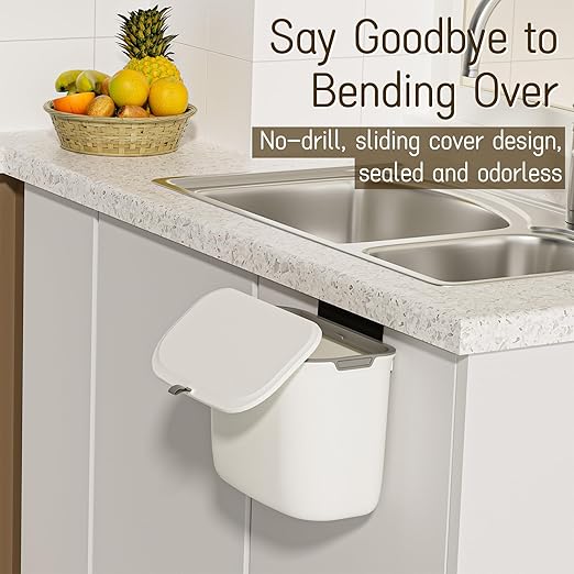 1.9 Gallon Kitchen Compost Bin Hanging Small Trash Can with Lid Under Sink Dual Installation & Triple-Seal Technology, Odorless Kitchen/Bathroom/Office Trash Can for Home, RV