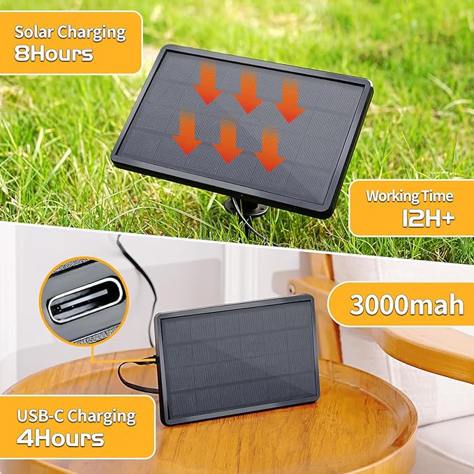 • Enhanced Solar Panel: Our solar light strings feature a large 3000mAh solar panel that can be fully charged in just 8 hours of sunlight, ensuring a continuous 12 hours of bright illumination