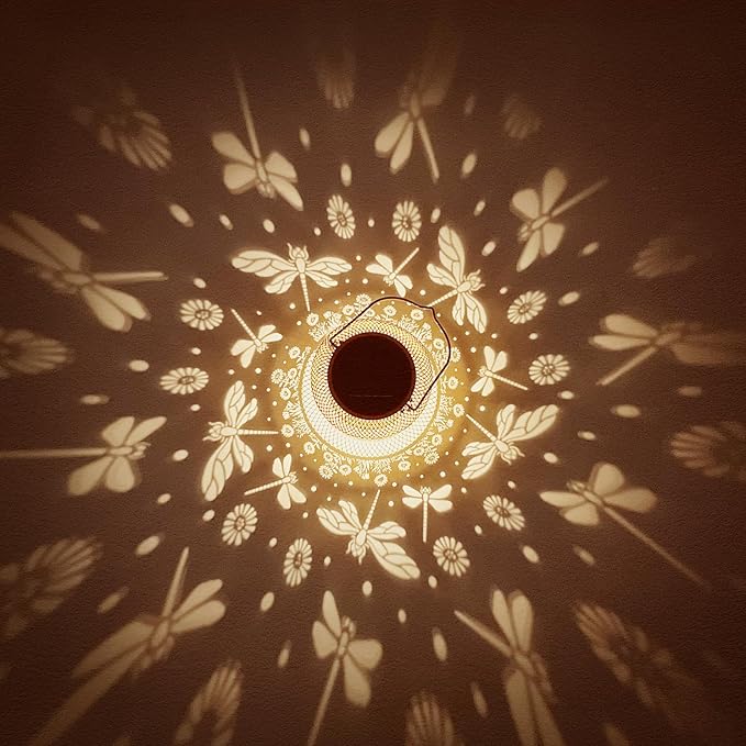 • Graceful Decorative Design - The retro appearance, with gold copper color and hollow out metal veneer, the solar outdoor lanterns casts bright and warm light in darkness, accompanied by gorgeous and graceful dragonfly patterns, adding a beautiful atmosphere to the surrounding environment.