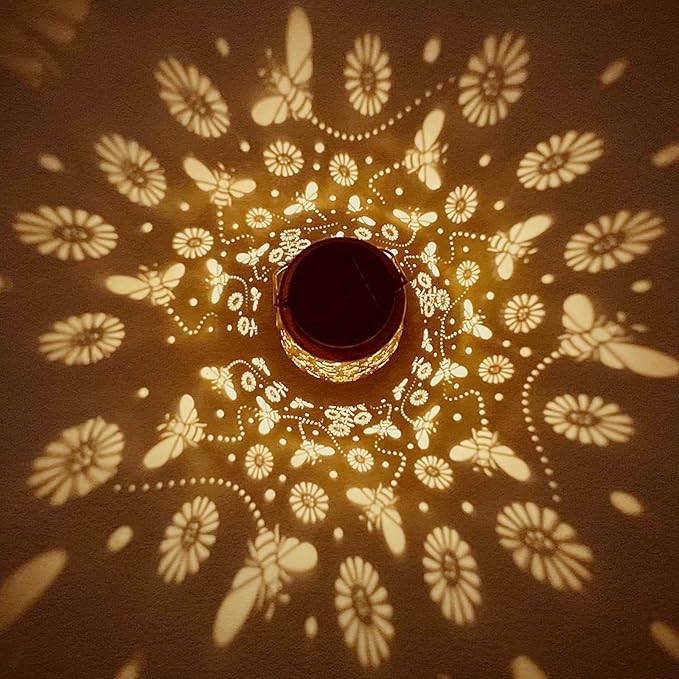 • Graceful Decorative Design - The retro appearance, with gold copper color and hollow out metal veneer, the solar outdoor lanterns casts bright and warm light in darkness, accompanied by gorgeous and graceful bee patterns, adding a beautiful atmosphere to the surrounding environment.