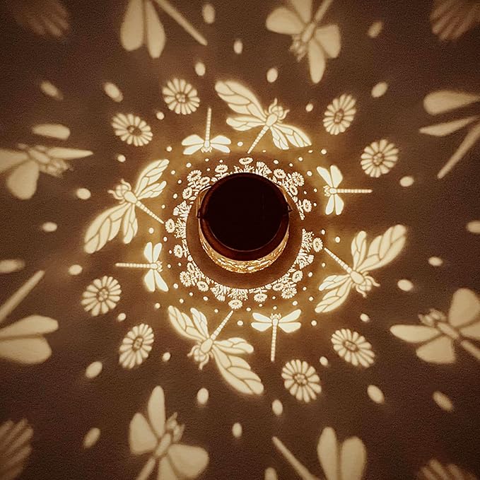 • Graceful Decorative Design - The retro appearance, with gold copper color and hollow out metal veneer, the solar outdoor lanterns casts bright and warm light in darkness, accompanied by gorgeous and graceful dragonfly patterns, adding a beautiful atmosphere to the surrounding environment.