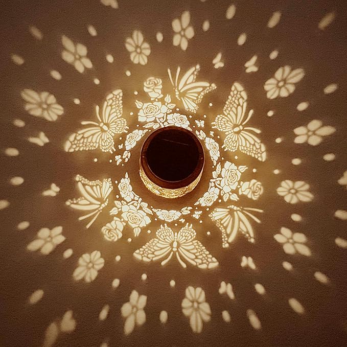 • Graceful Decorative Design - The retro appearance, with gold copper color and hollow out metal veneer, the solar outdoor lanterns casts bright and warm light in darkness, accompanied by gorgeous and graceful butterfly patterns, adding a beautiful atmosphere to the surrounding environment.