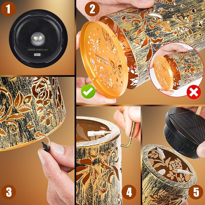 • 【High-Efficiency Solar Power】: Equipped with an upgraded solar panel that charges for 6 to 8 hours during the day; provides 8 to 10 hours of bright illumination at night; includes a large-capacity 1600 mAh battery for reliable power; automatically turns on at dusk and off at dawn; ideal for creating a warm and inviting ambiance with solar lanterns