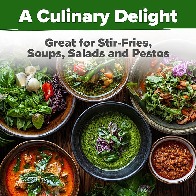 • Fresh and Aromatic Basil for Culinary Excellence – Elevate your cooking with fresh, aromatic Thai basil. These herb seeds provide a consistent supply of flavorful herbs, perfect for soups, salads, and authentic Thai dishes from your basil plant.