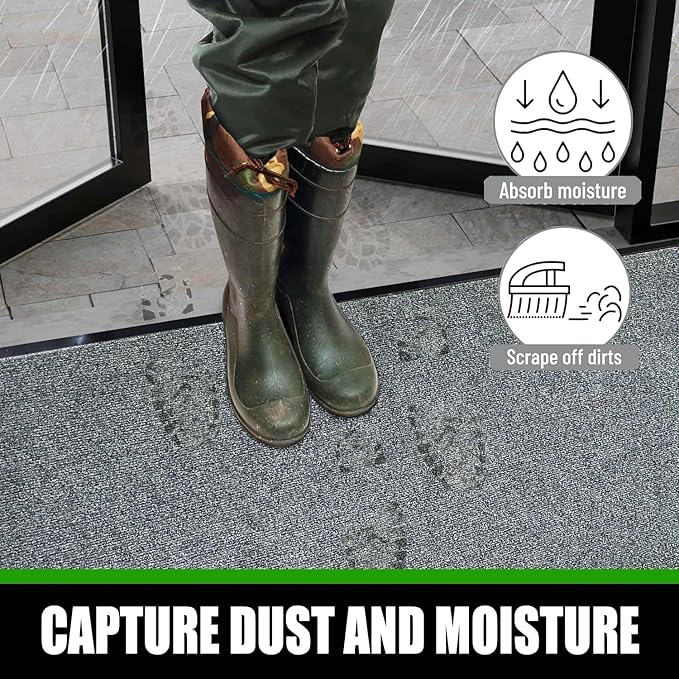 • Rubber Backing for Stability: The Rubber backing not only prevents moisture from reaching the floor but also helps keep the mat in place. This feature is important for safety, as it reduces the risk of slips, trips, and falls.
