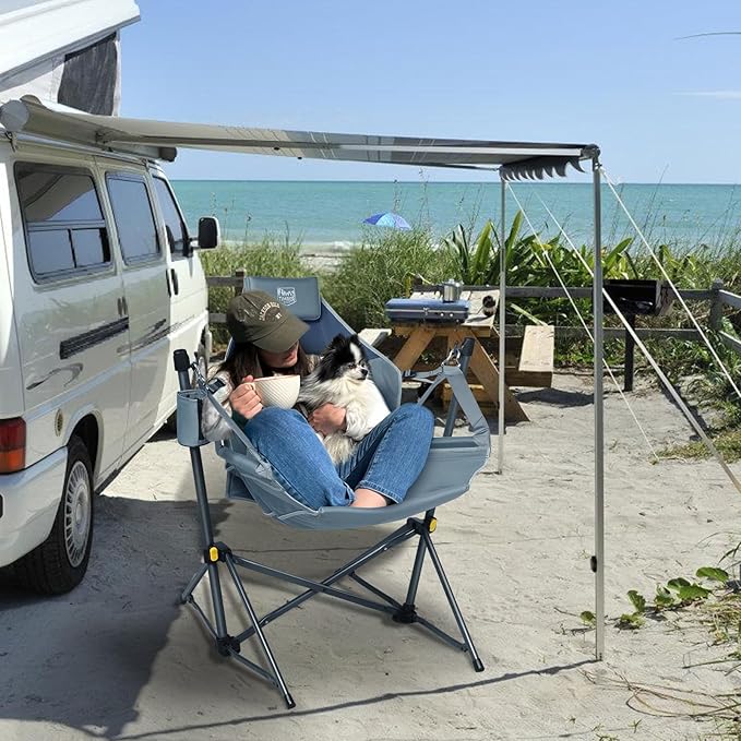 • Designed for Comfort: Camping swinging chair with padded fabric and pillow offers you a de-stressing, relaxing experience in outdoors. Adjustable backrest helps you to find the most comfortable position to sit or lie down.
