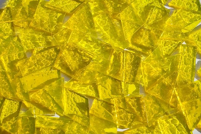 Large Transparent Textured Glass Tiles for DIY Crafts, 200g Stained Glass Pieces Supplies, 4 Shapes Tiles for DIY Mosaic Kit, Yellow Sunbeam
