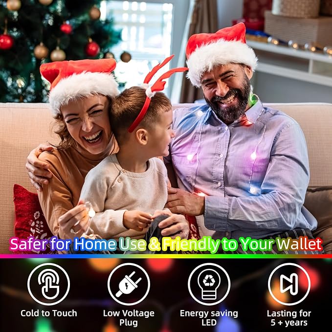 • Christmas Lights & Energy-efficient: Our LED Christmas lights offer a safe lighting solution for your holiday decor, especially when it comes to their soft and gentle glow. The decorative lights are designed with energy-efficient LED bulbs, consuming less electricity and lasting longer than traditional lighting options. They're an eco-friendly choice for your Christmas decorations.