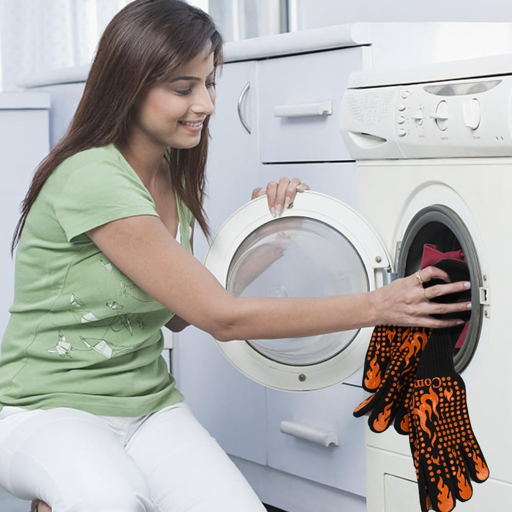 • Easy to clean and store: Our heat resistant gloves can be easily cleaned either by machine washing or hand washing. The inner side of the cuffs features a convenient loop for hanging and drying, making storage a breeze.