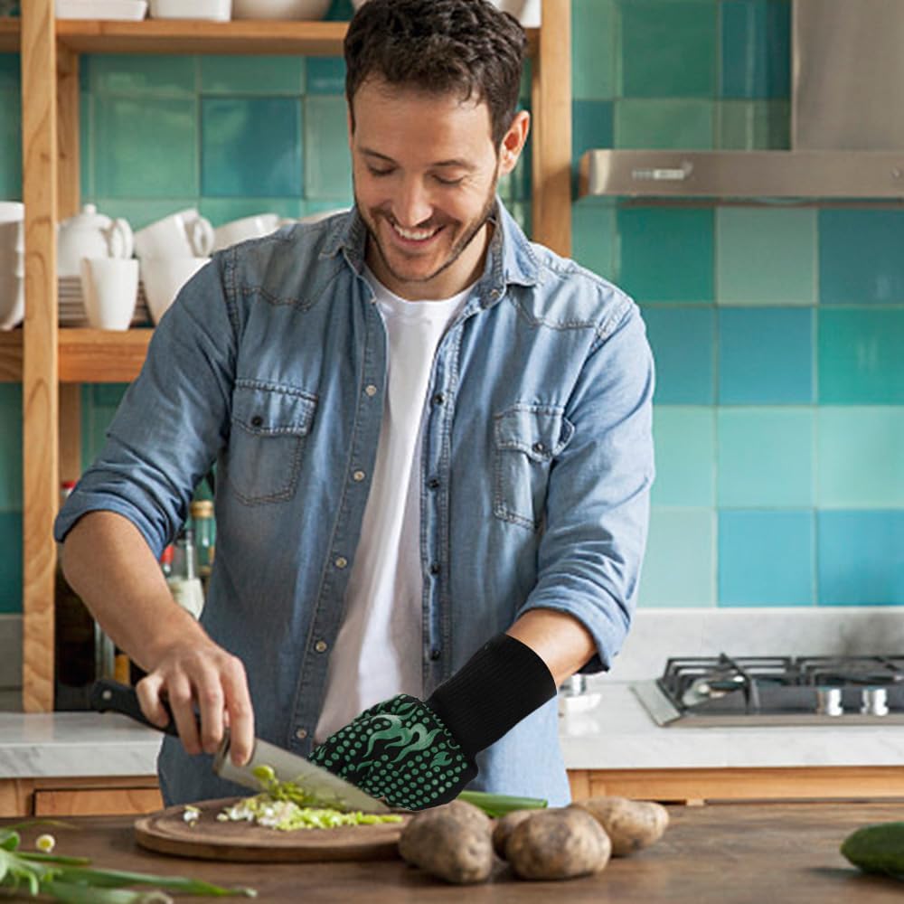 • Heat Resistant: Our BBQ gloves are designed to provide protection for your hands while cooking, grilling, baking, or handling hot pots. With an instant heat resistance of up to 1472°F, these gloves are perfect for high-temperature cooking and baking.