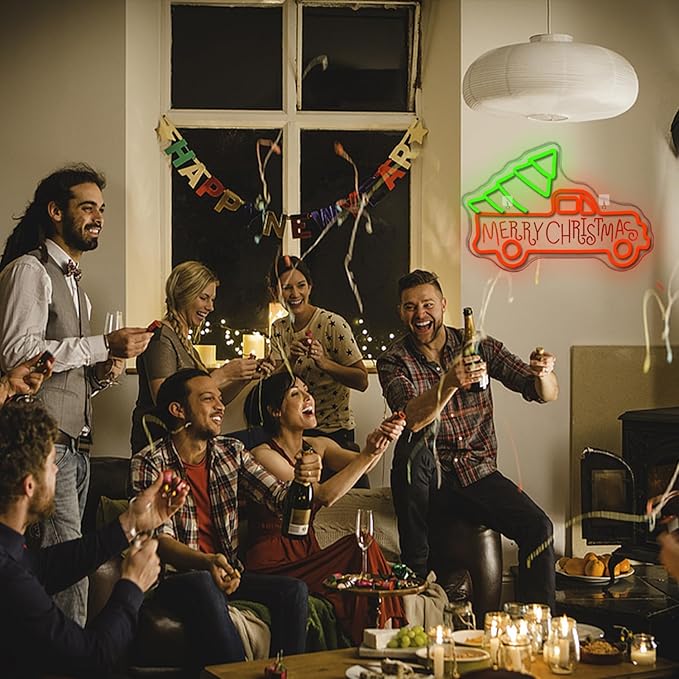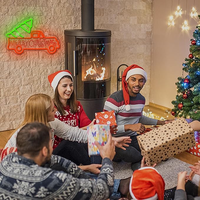 WLHOPE Christmas Truck Neon Sign,Merry Christmas Neon Signs for Wall Decor,Dimmable Merry Christmas Led Signs for Christmas Party Backdrop Bedroom Window Bar Club Shop,Christmas Gift Decoration