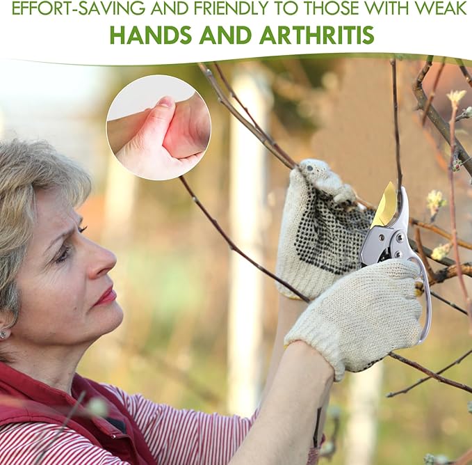• ❤️‍🔥EASY TO OPERATE AND EFFECTIVE LOCKING: The scissors are reliable and easy to use. They feel comfortable and durable, suitable for a variety of cutting tasks; Excellent ability to handle difficult tasks such as cutting grass, trimming overgrowth and cutting large diameter branches.