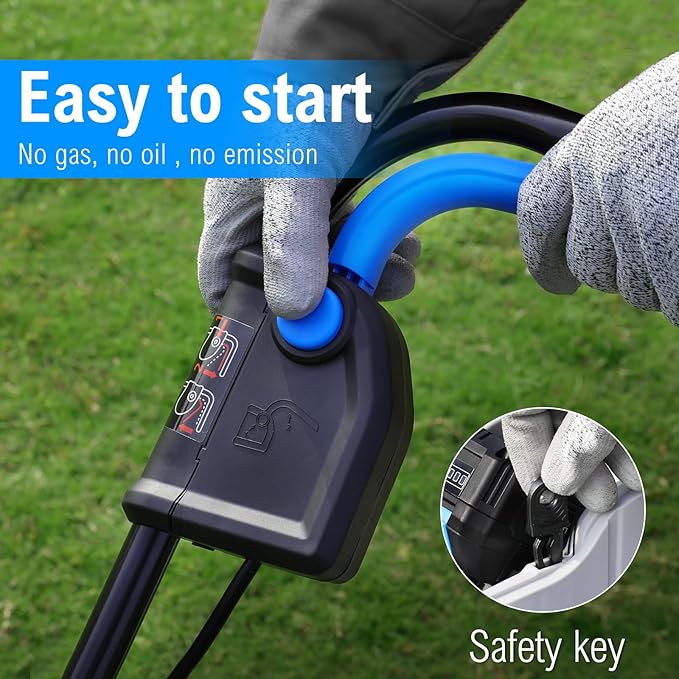 • 【Lightweight and Maneuverable】: Weighing only 23.7 pounds, the electreic cordless lawn mower is easy to maneuver and transport. Lightweight and intuitively designed, it operates effortlessly—requiring minimal strength to maneuver. Anyone can master it, regardless of age or physical ability.