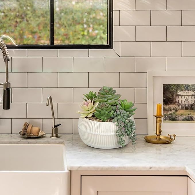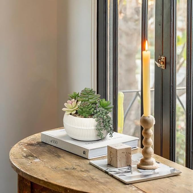 • Versatile House Plant Decor: Measuring 5.5" tall overall with a 3.1" height and 5.5" diameter ceramic pot, this compact faux succulent fits perfectly on office desks, bathroom counters, and bookshelves. The ceramic pot provides stability while staying space-conscious - ideal for apartments, dorm rooms, or as a charming kitchen windowsill accent