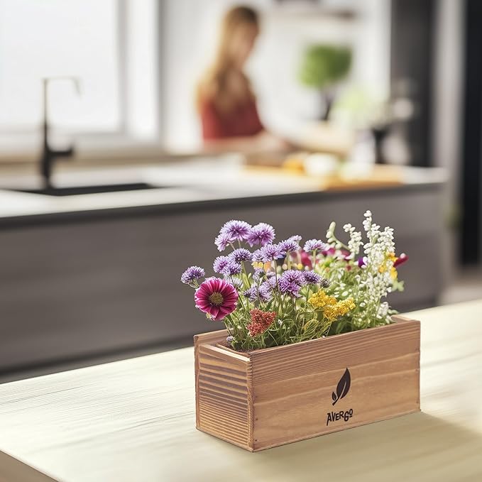 • Complete Gardening Set: Everything you need to grow vibrant wildflowers, including high-quality seeds, soil discs, rustic burlap planters, durable wood box, and gardening tools.