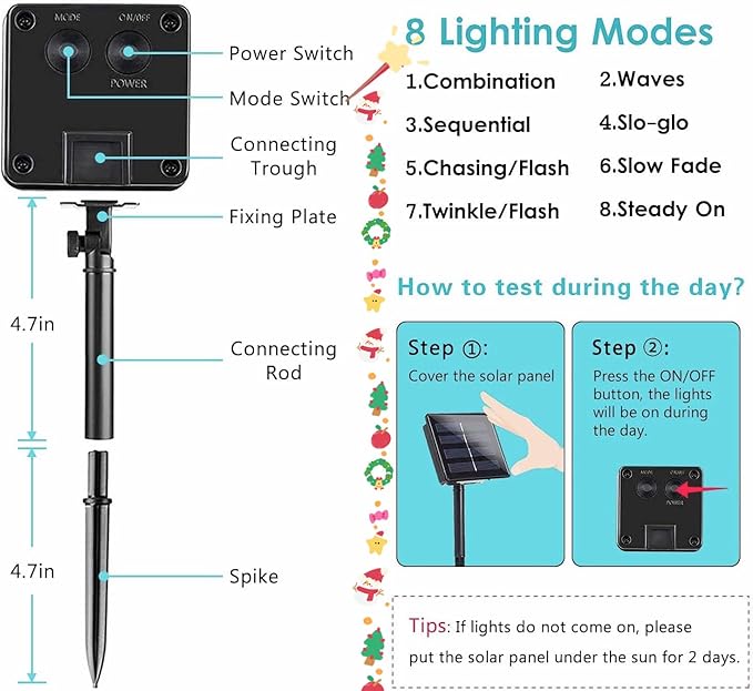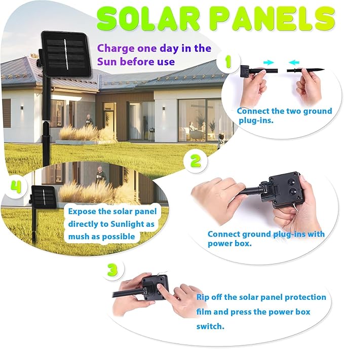 • 5. Simple and Easy Setup- Enjoy hassle-free installation with no need for batteries or electrical outlets. Just position the solar panel in a sunny location and switch on the lights. Perfect for gardens, patios, and even camping trips, these lights offer an environmentally friendly way to illuminate your outdoor areas.
