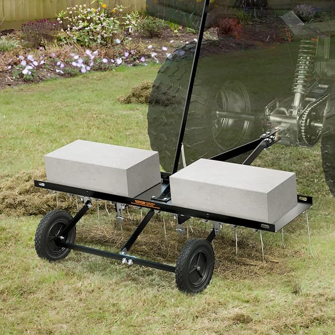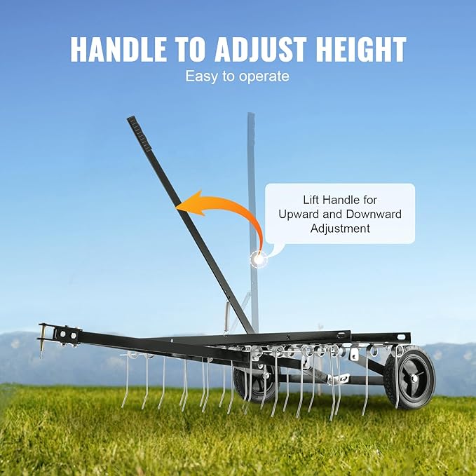 • Effective Weed Removal: The tow-behind dethatcher features 20 sturdy, sharp steel tines with a 40'' working width, efficiently cleans withered grass, removes branches, and collects leaves, hay, and other materials. It is far more efficient than traditional hand tools and leaf rakes.