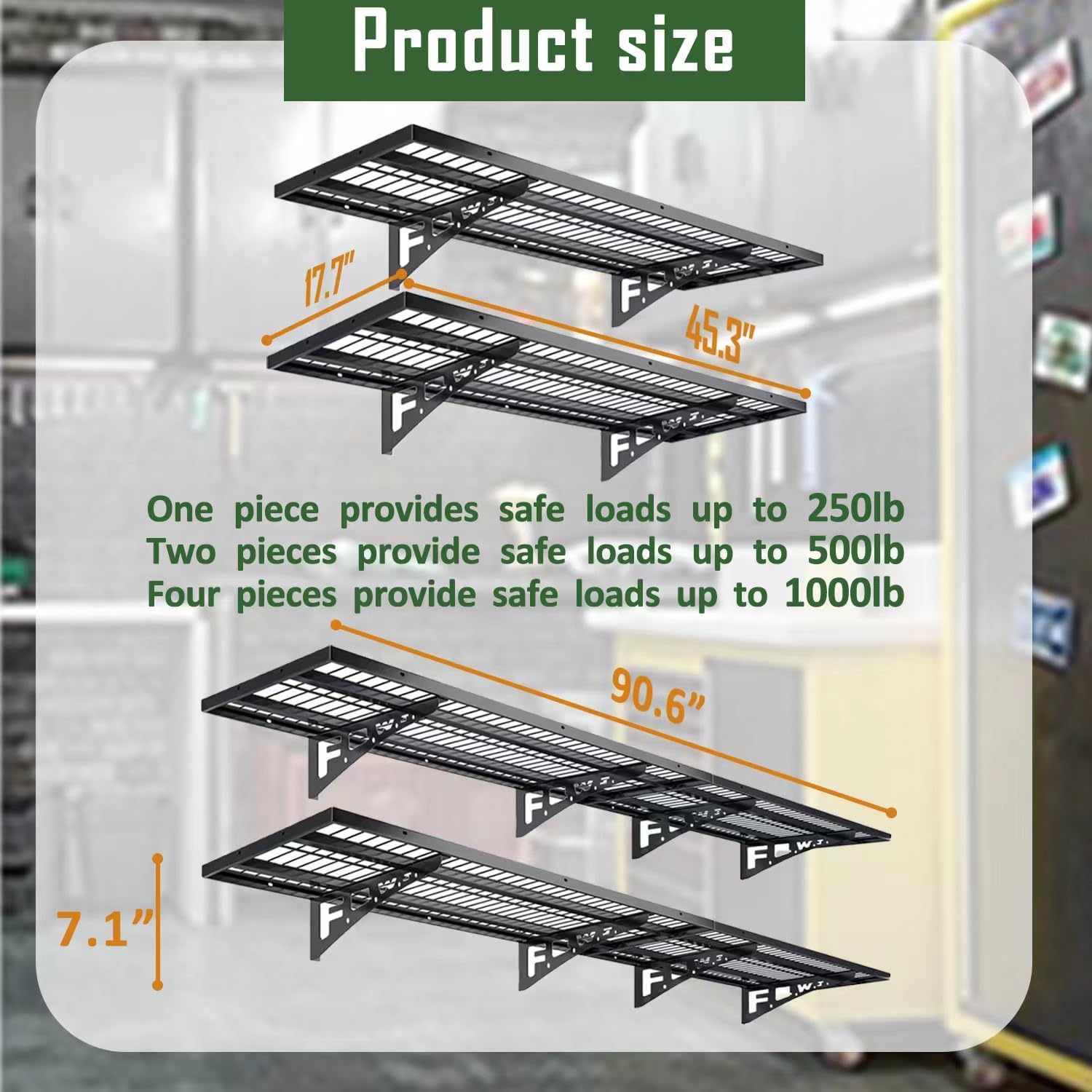 • UNIQUE DESIGN: The surface of the garage wall shelving is made of ‘high temperature powder coating’ process, which makes the surface smoother and more durable, and the edges are also wrapped to avoid scratches.