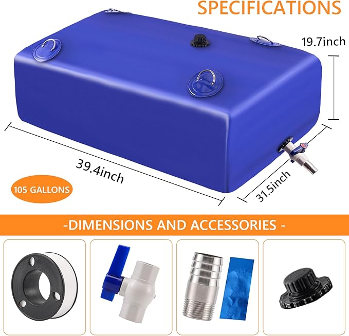 • LARGE CAPACITY WATER STORAGE BLADDER: Our water bladder size: is 39.4*31.5*19.7 inches, our water storage containers can hold up to 105 gallons of water, and the water tank is big enough for camping and can hold a lot of water. It can also help you organize your garden, water your plants, and provide emergency water for outdoor activities or off-grid living.