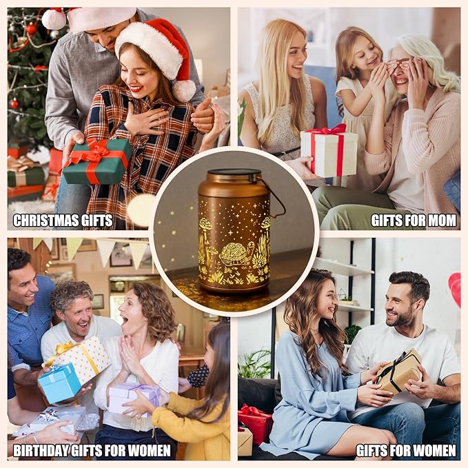 • Outdoor Decor, Garden Decor, Patio Decor, Balcony Decor, Yard Decor, Turtle Outdoor Solar Lanterns are crafted from upgraded durable metal, The retro appearance, with gold copper color and hollow out metal veneer, gorgeous color, casts bright and warm light in darkness, accompanied by gorgeous and graceful patterns, adding a beautiful atmosphere to the surrounding environment. Add illuminated charm to a garden, patio, porch and outdoor tabletop