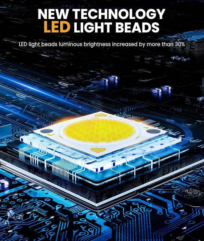 • 58 NEW TECHNOLOGY LED BEADS: The solar flood lights adopts new technology LED beads, the luminous efficiency of LED beads can reach 130lm/W, the luminous brightness is increased by more than 30%. 58pcs LED beads use zoned dense arrangement design, so that the solar light has more light focusing points, larger irradiation range, longer and brighter illumination distance.