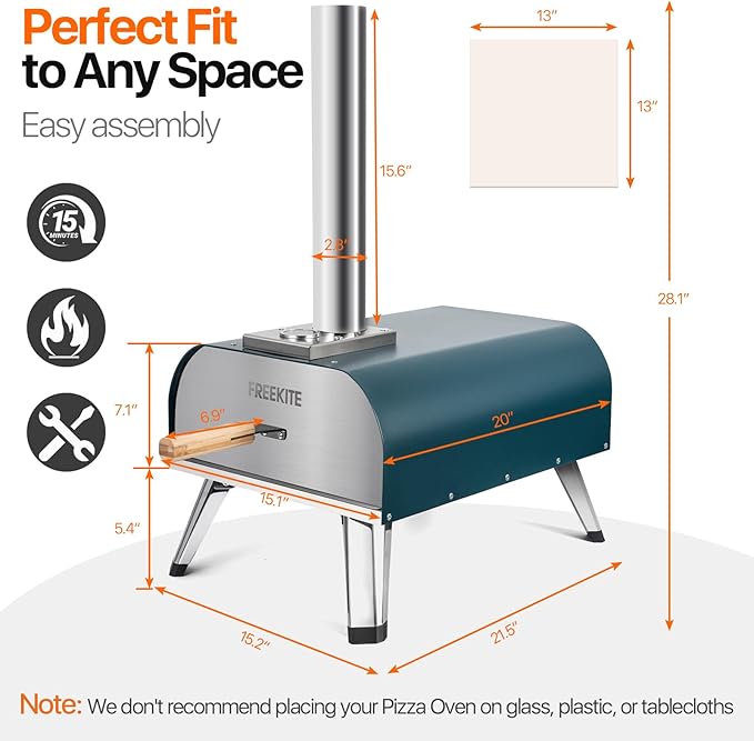 • Premium & Safe:The pizza oven is made of premium 430 stainless steel and cold rolled sheet metal for thickness and durability, this double insulated construction provides excellent heat retention and combines with the natural efficiency of wood fuel for an efficient cooking experience. The pizza oven is easy to operate, simply place the firewood in the oven, light the fire and start baking. It offers excellent safety from potential safety risks such as over-burning and excessive temperatures