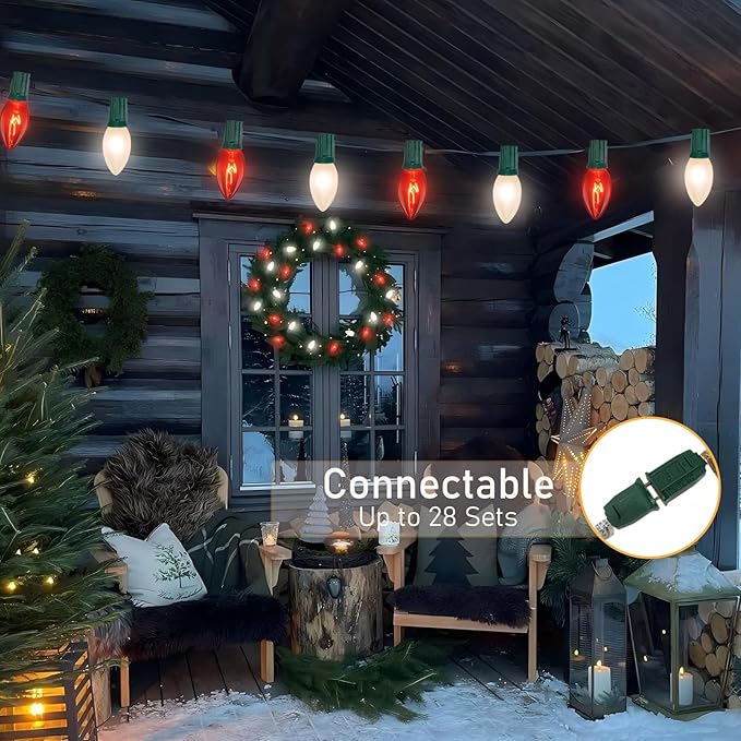 • Seamless Connectivity: Transform your holiday lighting with c9 red and white christmas lights featuring end-to-end connectivity. The snug E17/C9 candelabra socket base allows for secure connections, letting you link multiple strands together effortlessly. Perfect for creating expansive light displays, you can easily cover large areas and make your festive season shine even brighter.