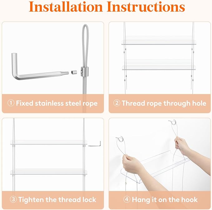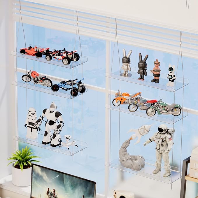 • Space Saving: The sleek, transparent design of the Hanging plant shelf complements any interior decor style. It is perfect for showcasing 3-5 small pots, herbs, and succulents, and can also be hung in bathrooms, living rooms, and bedrooms to store small items
