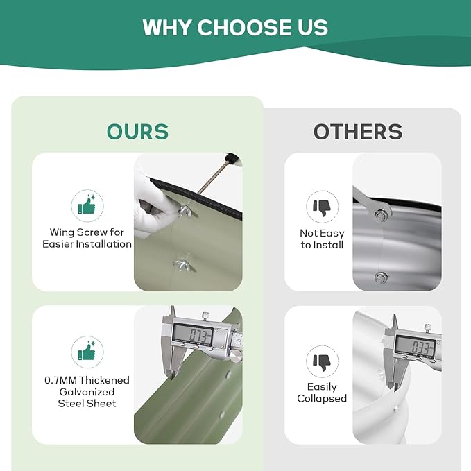 • 【 Easy Assembly 】Our metal raised garden bed is simple and easy to install. According to the detailed instructions and installation tools we provide, you can easily assemble your garden box and start planting with just a few simple steps and little time.