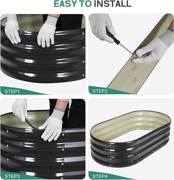 • 【 Easy Assembly 】Our metal raised garden bed is simple and easy to install. According to the detailed instructions and installation tools we provide, you can easily assemble your garden box and start planting with just a few simple steps and little time.