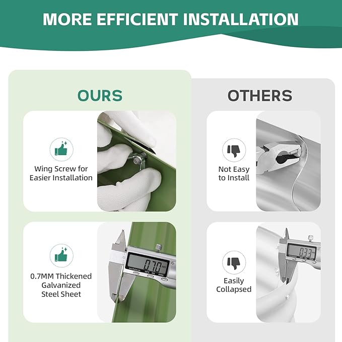 • 【 Double folded edge design 】Our raised garden bed kit features a rounded edge design that protects you and your family from scratches during installation.