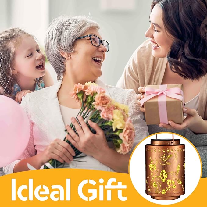 Solar Lanterns Outdoor Waterproof Mushroom Butterfly Garden Decor Gifts for Women Mon Grandma Metal Hanging Solar Lights Decoration for Outside LED Lanterns for Yard Patio Lawn Pathway(Hummingbirds)