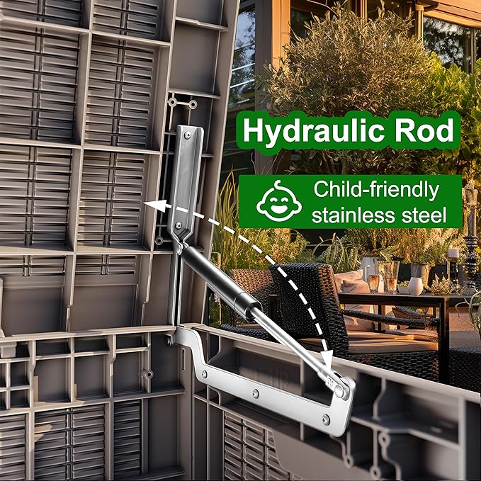 • Weatherproof material: This deck box is made of environmentally friendly polymer resin. It has better water, corrosion, and UV resistance than traditional wood. There is no need to worry about it fading, rusting and falling off in the coming years. Years of virtually no maintenance are required.