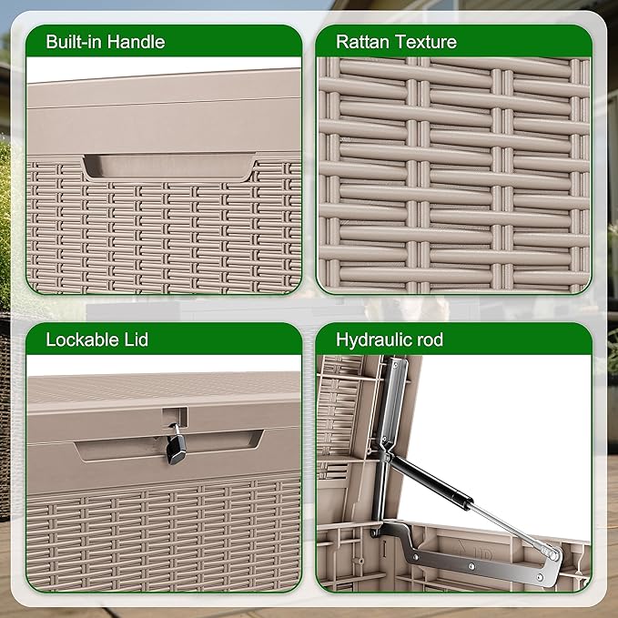 • Enhanced Design: The exterior of this outdoor storage box features a woven pattern design, making it an excellent decorative piece for patios, gardens, courtyards, porches, and poolside areas.