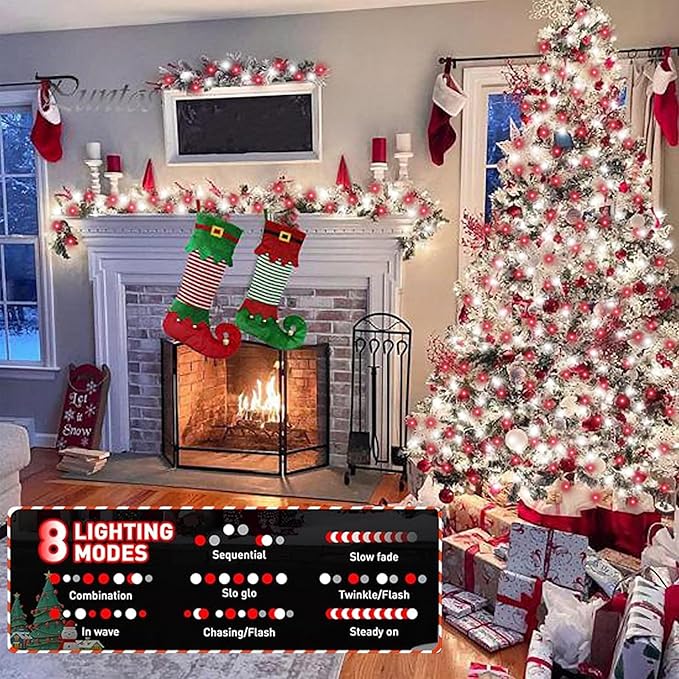 • Great for Christmas Decor:100 LED starry-style fairy lights with Red and White light accent your space with a unique, inviting glow. 33ft length is perfect to put around a garden or porch railing.The silver line design can be integrated with all kinds of scenes, more hidden, better reflect the beauty of the light.Hang these Red & White fairy lights on the Christmas tree or stick them on the wall to bring a festive atmosphere to your home. Have a warm and unforgettable Christmas with your family!